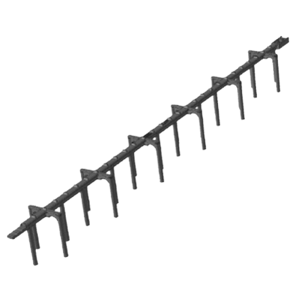 This heavy duty slab bolster features a form-guard leg tip design to prevent damage to expensive forms. It comes in 10-foot lengths bundled on a pallet for easy rebar placement.