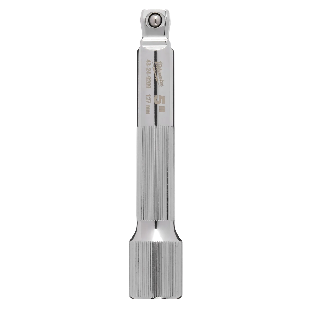 The MILWAUKEE 1/2' Drive Wobble Extensions offer the most control and better access even in the tightest applications. These extensions feature the largest knurling surface on both the shaft and female drive end, allowing for precision control when hand-tightening or working with oily materials. The male square end features a wobble design, providing up to 8 degrees of movement for enhanced accessibility at different angles and in tight spaces. Additionally, the male end provides versatility by doubling as both a standard and a wobble extension to suit various job requirements.