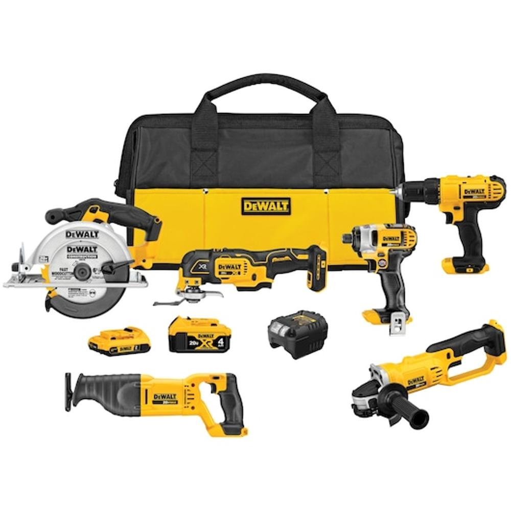 Unleash the power of innovation with this versatile collection of 20V MAX* tools. This comprehensive kit equips you with: a 20V MAX* 1/2 in. Drill/Driver for all your drilling and fastening needs, a 20V MAX* Reciprocating Saw ready for tough demolition, a 20V MAX* 6-1/2 in. Circular Saw for precise cuts, a 20V MAX* Oscillating Multi-Tool for detailed work, a 20V MAX* 1/4 in. Impact Driver for rapid screw-driving, and a 20V MAX* 4-1/2 in. Grinder for grinding and cutting tasks. Youll also receive two 20V MAX* batteries to keep you going, a reliable charger, and a robust storage bag for effortless transport.