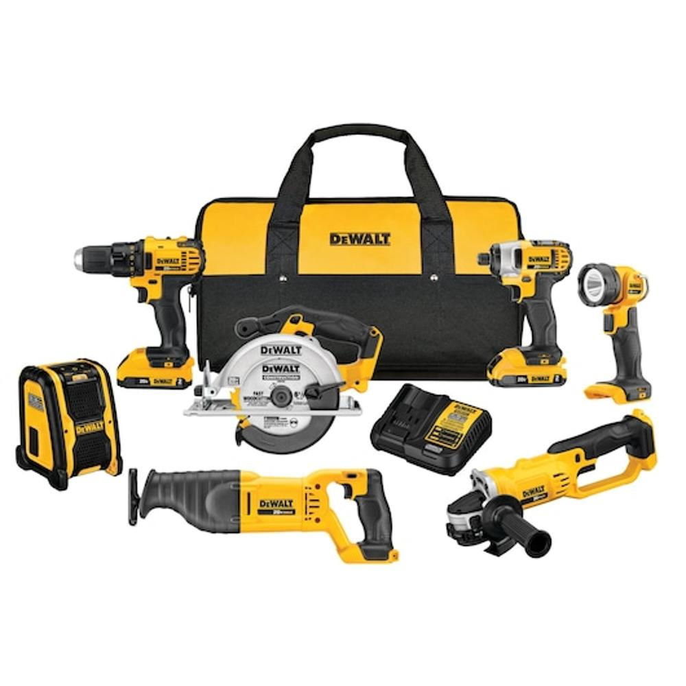 Unleash your project potential with our versatile 20V MAX* tool collection, engineered for cutting-edge performance. This comprehensive kit equips you with: a nimble 20V MAX* Compact Drill/Driver, a powerful 20V MAX* 1/4 in. Impact Driver, a precise 20V MAX* Circular Saw, a robust 20V MAX* Grinder, a versatile 20V MAX* Reciprocating Saw, an entertainment-ready 20V MAX* Jobsite Bluetooth Speaker, and a bright 20V MAX* Work Light. Plus, you'll find two 20V MAX* batteries, a charger, and a rugged storage bag to keep everything organized and ready for action.