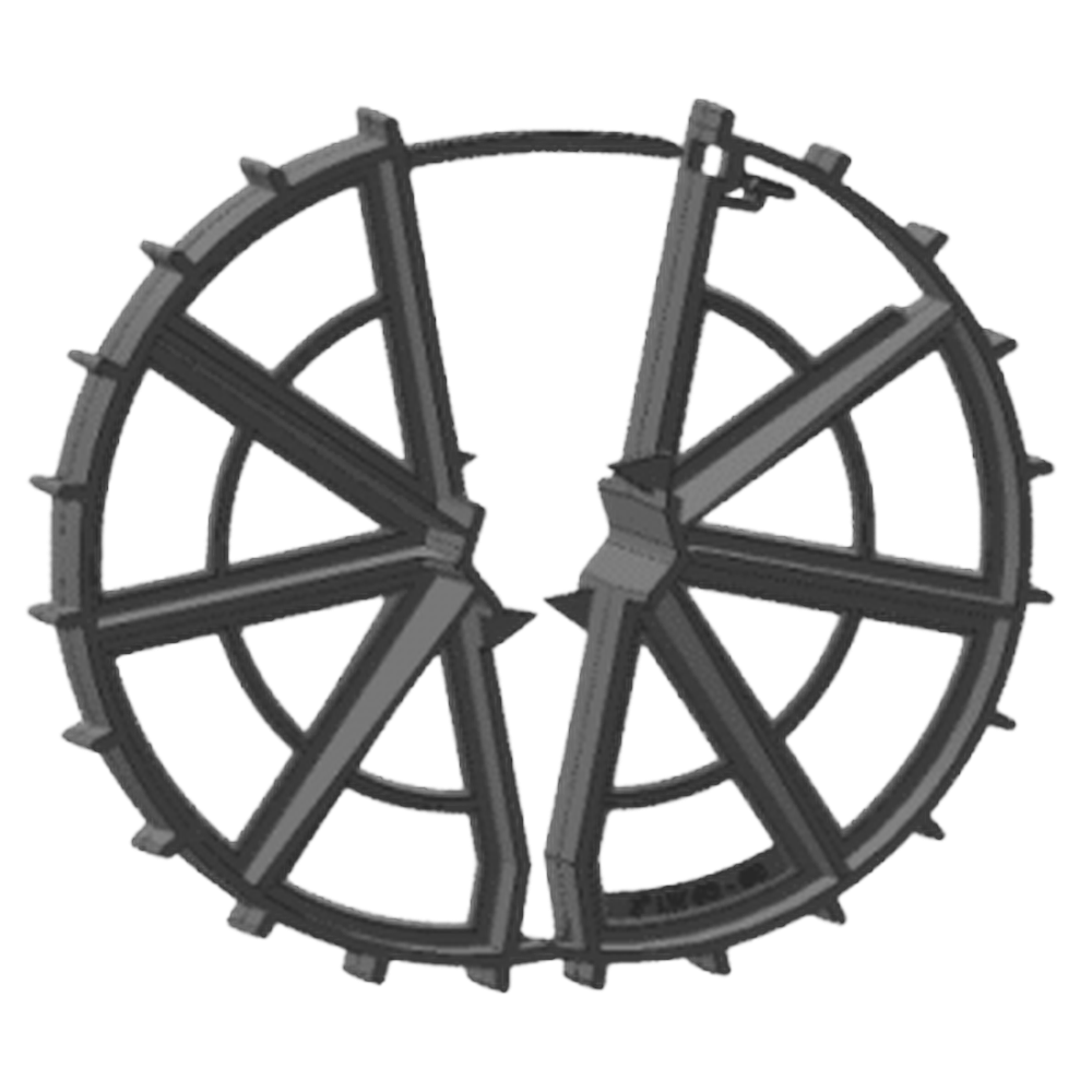 A 3-inch locking wheel designed for bar sizes #3 to #6, providing secure installation and ease of use with an improved zip tie design. It ensures proper positioning during concrete pouring for various applications.