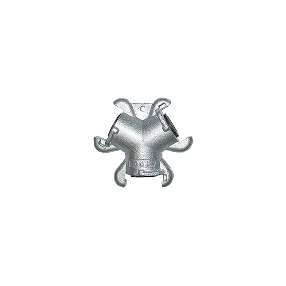 The 3-WAY UNIVERSAL CONNECTION is a heavy-duty manifold designed to provide reliable splitting or combining of air and water lines in industrial environments. Crafted from high-strength malleable iron, this connector is built to withstand the rigors of construction and mining sites. Its universal twist-lock design ensures compatibility with standard couplings, allowing for quick and secure connections without the need for specialized tools. This versatile 3-way component enhances operational efficiency by providing multiple outlet options from a single source.
