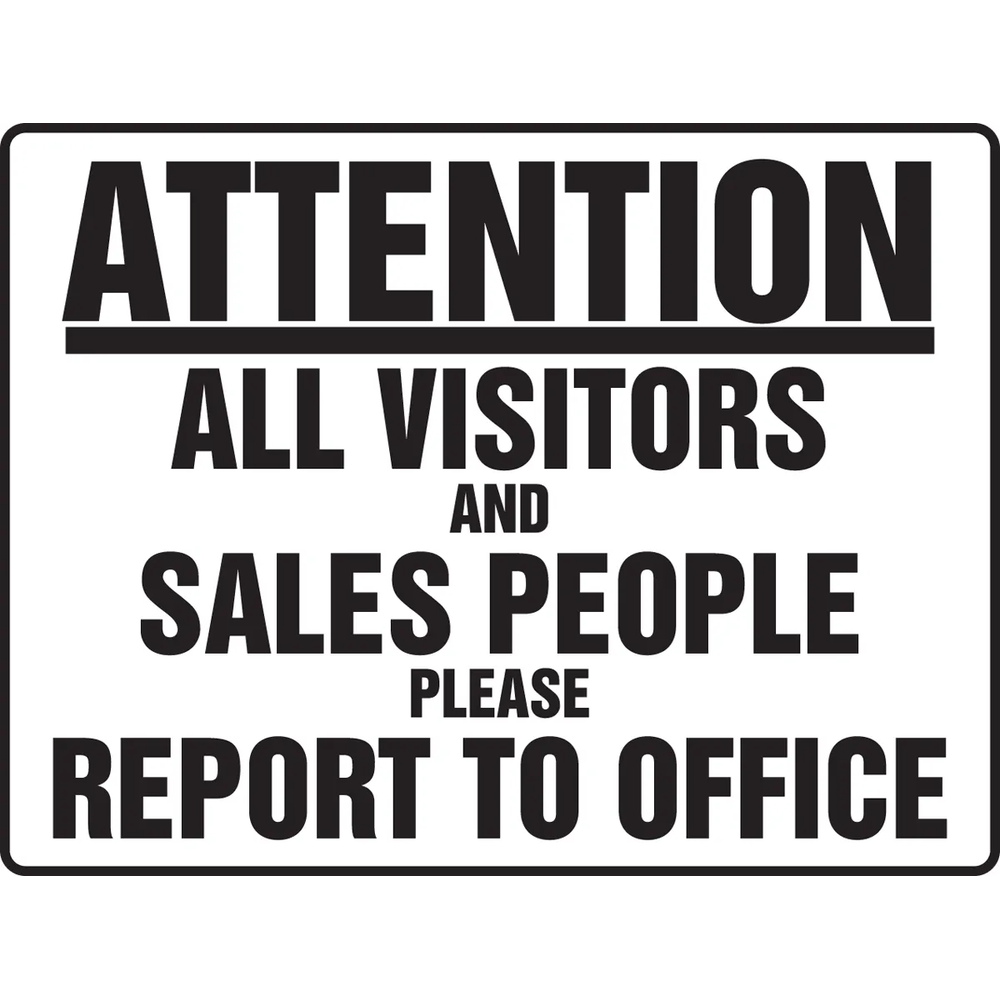 Informs visitors and sales people to report to office