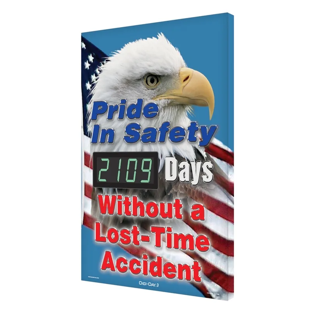 Accuform Digi-Day Electronic Safety Scoreboard Pride In Safety Days Without a Lost Time Accident 28x