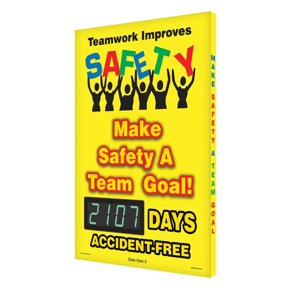 Accuform Digi-Day Electronic Safety Scoreboard Teamwork Improves Safety 28x20 inches Frameless