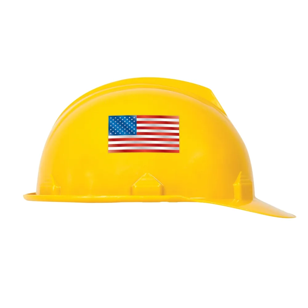 Hard hat/helmet stickers that show your safety message with colorful and bright labels for employees' hard hats. These stickers help inform all personnel that you are a proud American.