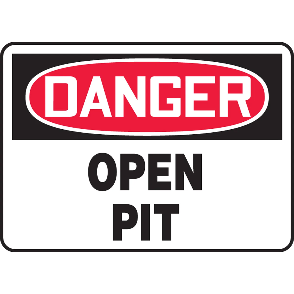 Warns people of an open pit in the vicinity so that they are careful. Danger header indicates a hazardous situation that, if not avoided, will result in death or serious injury.