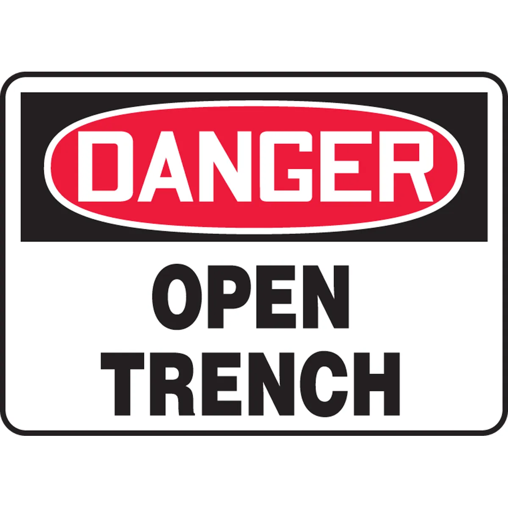 OSHA-compliant signage alerts others to the presence of an open trench to prevent injury. Traditional OSHA-style signs are the most widely recognized design format in the industry.