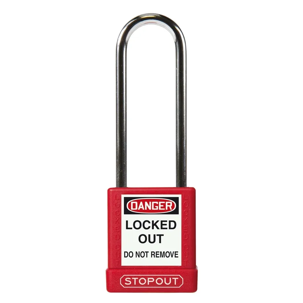 Accuform Plastic Body Aluminum Padlock with Hardened Steel Shackle Red Keyed Alike Master Keyed 3" S