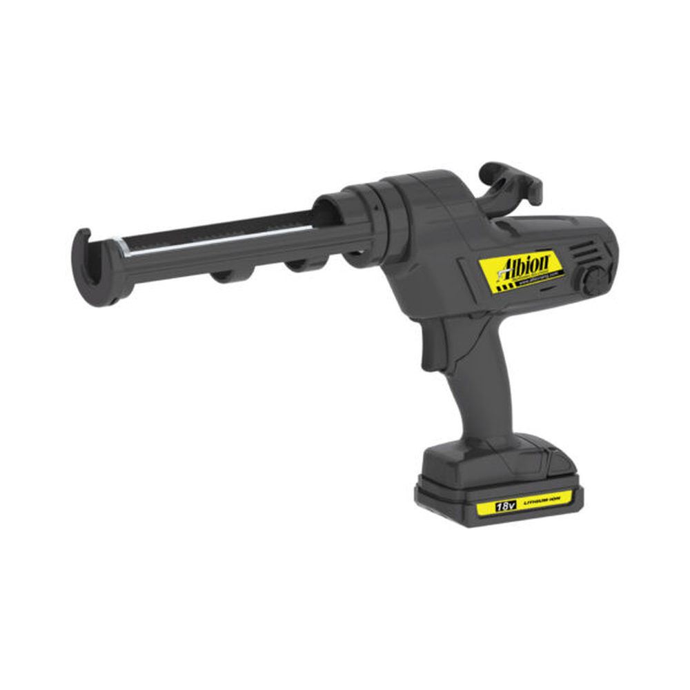 This is Albion Engineering's most powerful tool for dispensing 10oz/300ml cartridges. It features an 18V cordless drive system with high thrust and flow control.