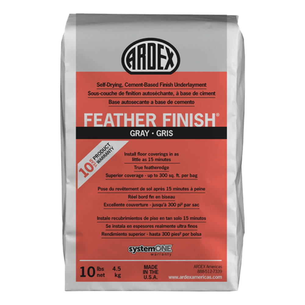 ARDEX FEATHER FINISH is a self-drying cement-based finish underlayment that provides a smooth surface for floor covering installation. It's formulated from a blend of Portland cement and other hydraulic cements.