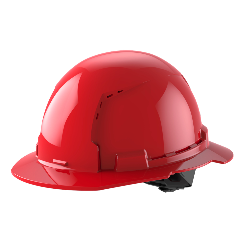 The MILWAUKEE BOLT Red Full Brim Vented Hard Hat with 4-Point Ratcheting Suspension is designed to adapt to your jobsite needs. This hard hat features a BOLT Headlamp Mount compatible with most headlamps for easy and secure attachment. It is equipped with four BOLT accessory slots and two universal accessory slots, allowing for easy integration of additional personal protection equipment and accessories. The ratcheting suspension allows for quick adjustments, and the moisture-wicking sweatband ensures you stay cool and dry.