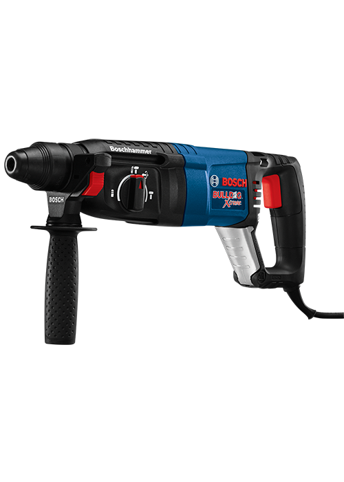 The Bosch 11255VSR 1 In. SDS-plus® Bulldog™ Xtreme Rotary Hammer is a versatile, handy tool that features a robust 8.0 Amp motor. From anchoring to large material breaking, it gets the job done right the first time. Engineered in the tradition of legendary Bulldogs, this powerful hammer delivers 2.0 Ft.-Lbs. of impact energy and 0-5,800 no-load BPM, but it weighs just 6.7 Lbs. The multifunction mode selector allows users to easily select among three modes of operation: rotary hammer, rotation only and hammer only. To optimize the chiseling angle, it has Vario-Lock positioning that rotates and locks the chisel in one of 36 different positions. It is Bosch’s PRO+GUARD™ dust system, helping users move toward OSHA Silica Table 1 dust compliance. The hammer is designed with an ergonomic D-handle for comfort. It features a variable-speed reversing trigger for accurate bit starting, and a Bosch-exclusive rotating brush plate, for equal power in forward and reverse. Busy pros will appreciate the tool's HammerHook, which allows the user to hang the tool on the job, and the SDS-plus® system provides for tool-free bit changes.