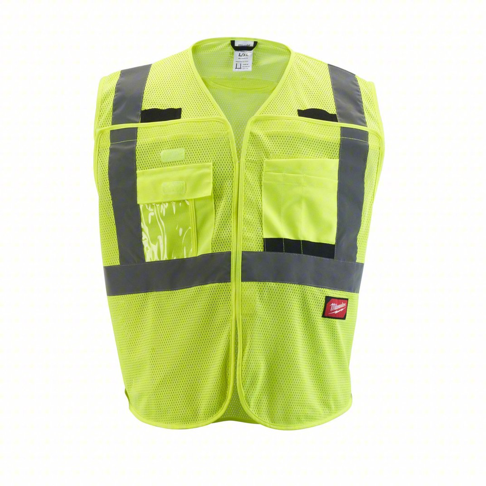 Our ANSI Type R Class 2 High Visibility Mesh Safety Vest is designed to keep you cooler and reduce odor. These MILWAUKEE safety vests are constructed from moisture wicking and anti-microbial treated fabric that helps you stay cool and dry fast while preventing odor and bacteria build up. This vest is made of a lightweight, breathable mesh for comfort in hot working conditions. The vest features a quick internal size adjustment for a better fit and a durable pass-through slit for fall protection gear. It also has 9 pockets, including a clear ID holder and an internal pocket, for added storage.