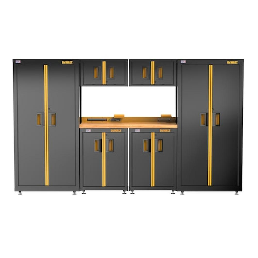 Transform your workspace with this expansive 126-inch, 7-piece welded storage suite. Featuring ample cabinet storage and a durable wood top, this ensemble is a testament to American craftsmanship, proudly built in Sedalia, Missouri, using global materials. Start your organization journey with the integrated cabinet storage the perfect foundation for a clutter-free environment. Each unit is constructed from robust, welded heavy-duty steel for lasting durability. Forget frustrating assembly; this complete suite arrives ready for immediate use, requiring only minimal setup straight from the carton. Explore this versatile suite, one of five distinct configurations designed to suit your needs.