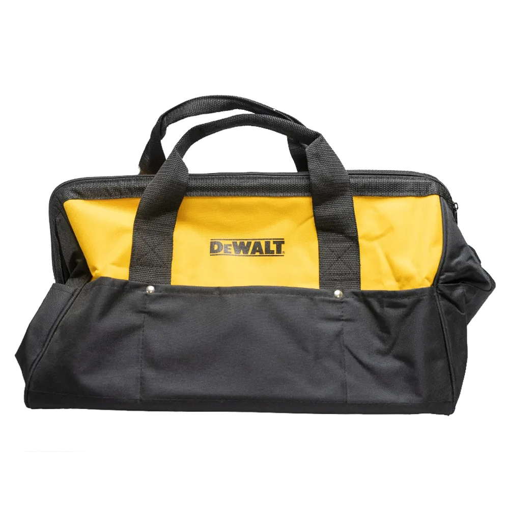 Roomy, convenient, and ready-to-haul, the Dewalt 18-inch Medium Tool Bag is the ideal choice for transporting handheld Dewalt tools. It features a bright yellow and black color scheme that makes it tough to lose, and includes several pockets for carrying accessories such as screwdrivers, claw hammers, and even drill bits. This 18-inch bag features plastic runners along the bottom for added durability and stability. The two handles come together at the top, just above the zipper, which makes it extremely easy to carry as well.