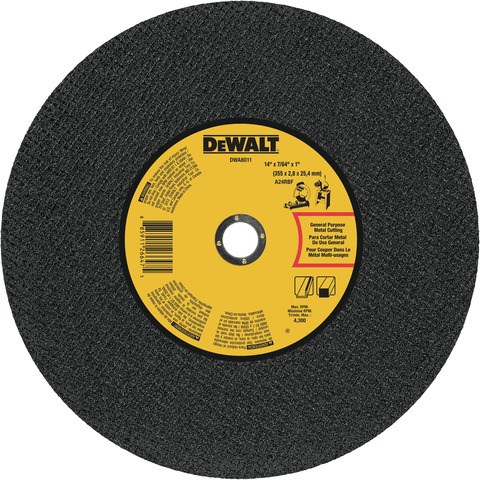 With a softer formulation for expedited cutting, DEWALT Type 1 Metal Fast Cutting Chop Saw Wheels feature high grain concentration for aggressive cuts and smooth-running wheels. 2 full sheets of fiberglass offer durability and safety.