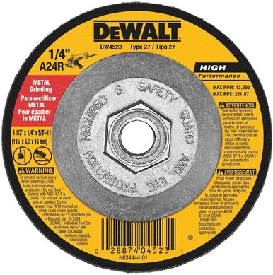 Crafted from high-performance aluminum oxide grain for durability and optimal material removal, DEWALT Type 27 HP Metal Grinding Wheels grind and shape a variety of metals and non-ferrous materials. High grain concentration for aggressive grinding action and smooth-running wheels.