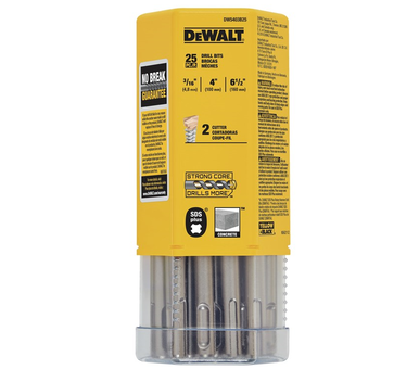 SDS Plus 2 Cutter Drill Bits have a strong tapered core to help resist flute breaks, especially when drilling deep holes. For optimal drilling speeds, the two-stage flute design features a variable helix pattern that quickly moves debris away from the contact zone. Plus, the two sharp, carbide-cutting edges deliver clean, round holes for secure anchor installation. These bits are made in Germany and are GUARANTEED TOUGH® – so tough that we are offering a NO BREAK GUARANTEE*. If you have our bits, we have your back.