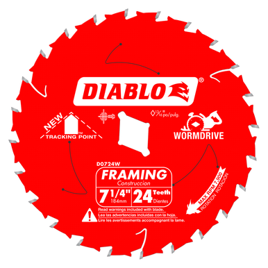 Diablo’s next generation 6-1/2 in. 24-teeth Tracking Point saw blade features the first ever, Tracking Point tooth design and an enhanced anti-vibration design. Diablo’s Tracking Point tooth design delivers maximum life and durability with effortless cutting performance for 5X longer life, 2X more durability and increased stability. This is the only 6-1/2 in. saw blade in the market to include Tracking Point tooth design; making it ideal for framers, roofers, remodelers, concrete formers or anyone wanting ultimate cutting performance in pressure treated wood, 2x lumber, plywood, hardwoods and softwoods.