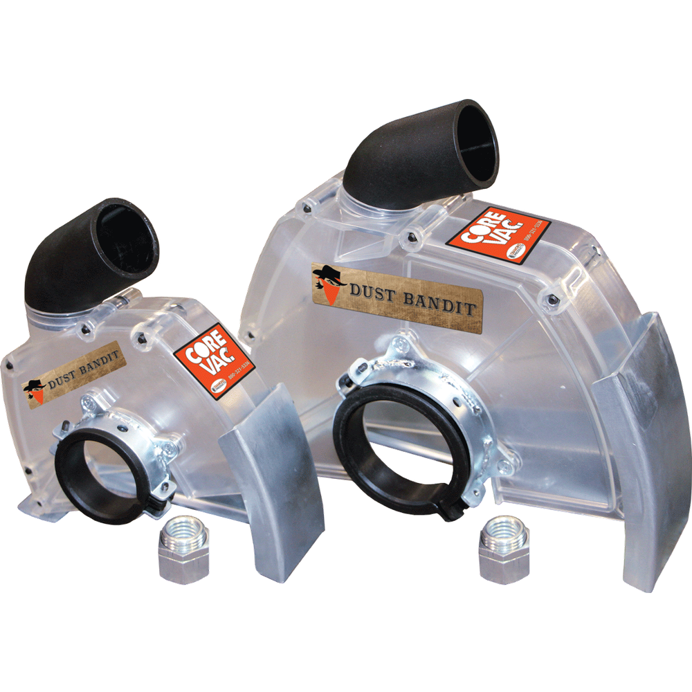 Installs on most side grinders for dust removal while cutting with small diameter blades, tuck point or V-crack blades. Features clear polycarbonate for easy cutting view and heavy duty flexible material for rugged job sites.