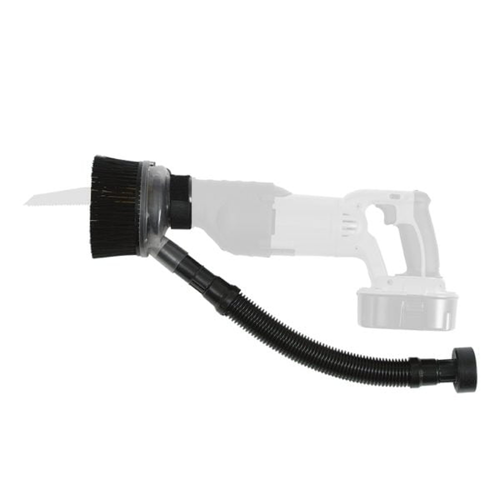 A dust shroud designed for effective dust containment while cutting with reciprocating saws. It features universal compatibility with most reciprocating saw models and clear blade visibility for precision cutting.