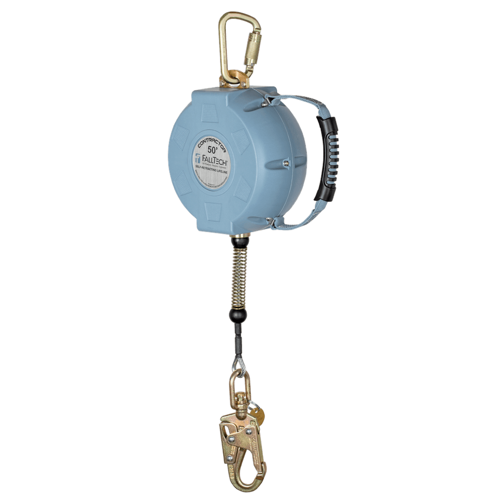 The FallTech 727650C Contractor C is a high-performance 50-foot self-retracting lifeline designed for reliable fall arrest in overhead applications. This model features a rugged glass-filled nylon housing and a 3/16-inch galvanized steel cable to ensure long-term durability in harsh job site environments. It provides a cost-effective safety solution that combines smooth operation with the heavy-duty strength required for industrial and construction use.