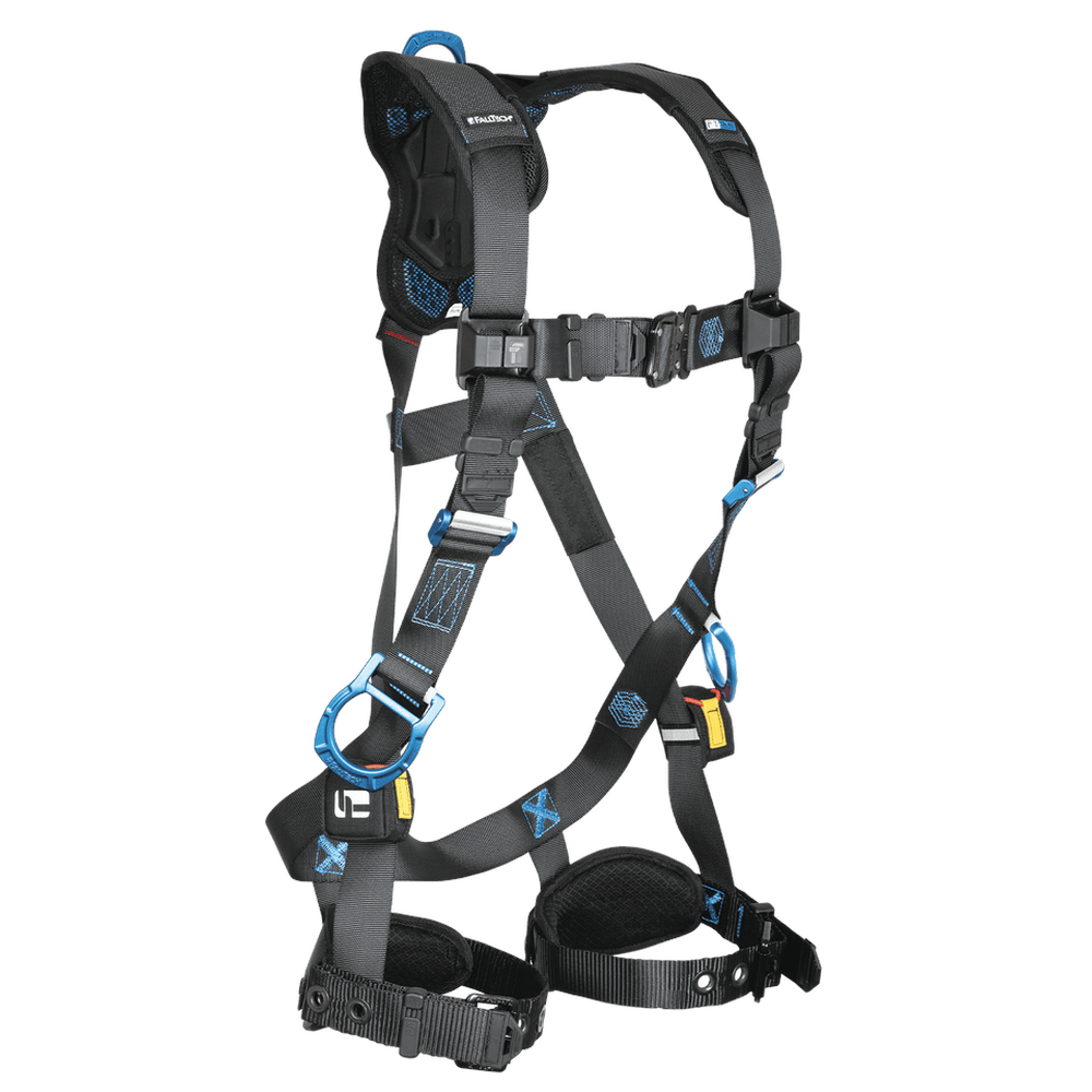 The Falltech 8128B3DS FT-One is a premium full body harness engineered to deliver superior comfort and mobility for demanding work environments. It features the innovative Comfort Legs lateral leg strap construction and an ArrowGrip dorsal D-ring plate to minimize slippage and constant readjustment. Advanced gel padding disperses weight effectively, making it an ideal choice for workers requiring all-day fall protection.