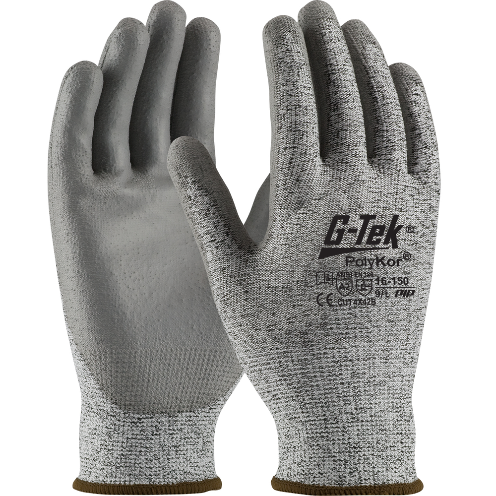 G-Tek PolyKor Seamless Knit Blended Glove with Polyurethane Coated Flat Grip Salt Pepper XL
