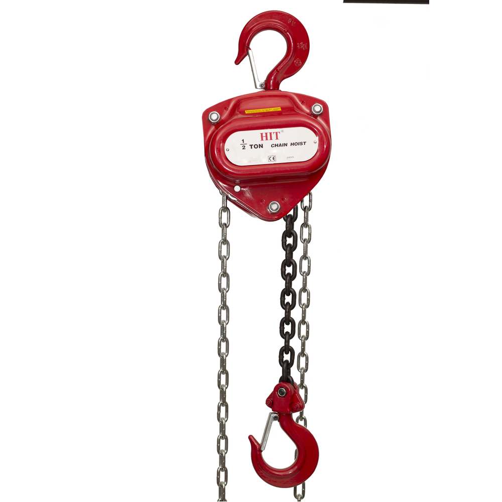 The HIT H-100 Series Manual Chain Hoist features an all-steel construction that is both compact and lightweight for maximum strength. This hoist is ideal for various applications including construction, industrial lifting, and rigging operations. It incorporates a high tensile alloy steel load chain and chrome molybdenum steel gears for exceptional durability and safety.