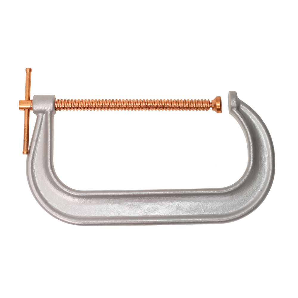 This heavy-duty C-clamp features a rugged malleable iron frame with reinforced corners for maximum durability. The precision-machined screw is heat treated to ensure high performance and longevity. Designed specifically for the welding industry, it includes a copper-plated spindle, swivel pad, and sliding-pin handle to resist spatter. This tool is ideal for professional welding, shop work, and home use.