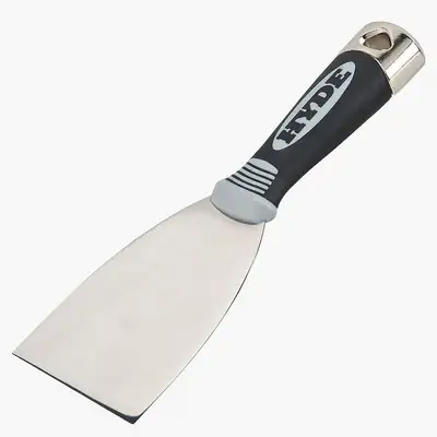 Hyde pro, 3", flexible, stainless steel, putty knife, 3" flexible blade, use for applying compounds & filling holes & cracks, high carbon stainless steel blade is tempered & satin finished, solvent resistant nylon handle.