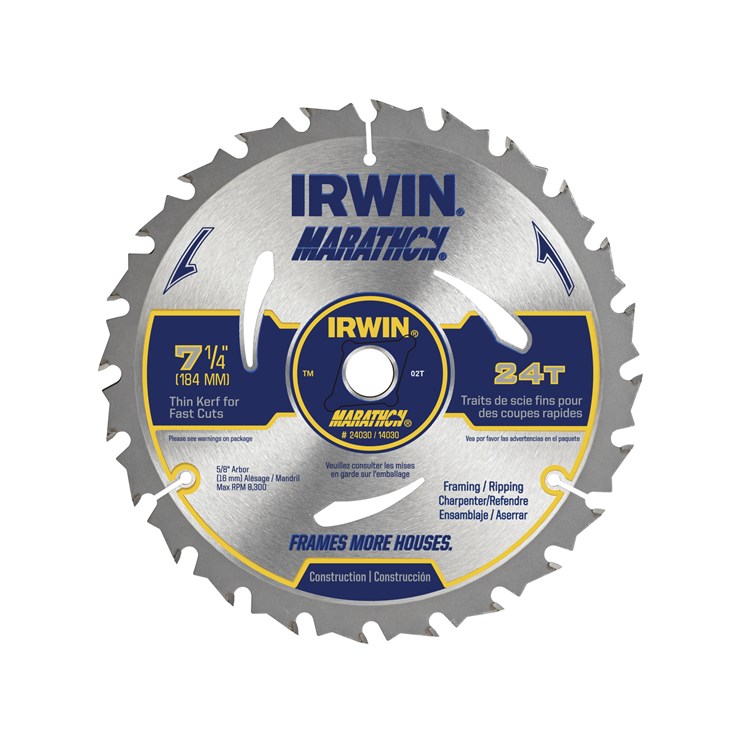 IRWIN® circular saw blades last longer by design. New heat/vent expansion slots reduce vibration, providing longer life for the blade and straighter cuts for the user. A reinforced shoulder adds durability, and alternating carbide teeth are ground thinner for faster cutting and stay sharp longer.