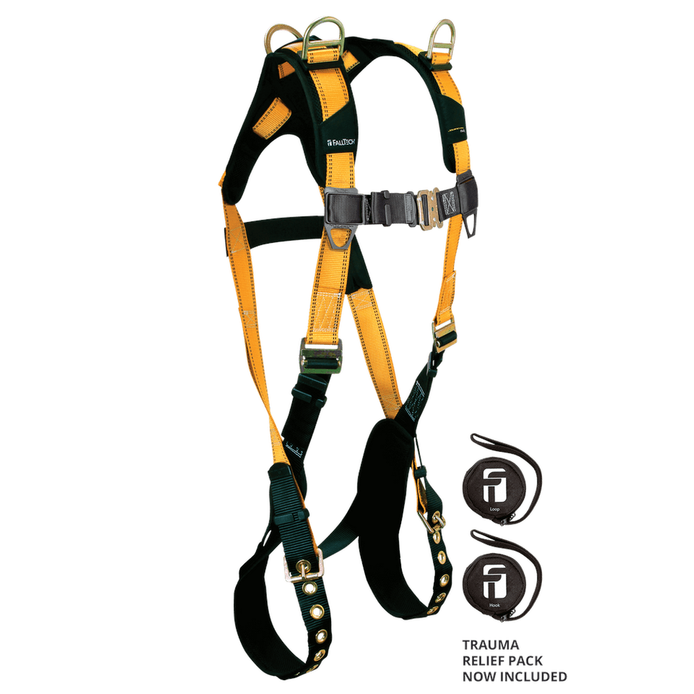 The FallTech 7027C is a premium full body harness from the Journeyman Flex Steel series, specifically engineered for retrieval and fall arrest applications. This UniFit harness features an integral padded shoulder yoke and hip-to-seat leg pads to provide advanced breathable comfort throughout the workday. Built with durable plated alloy steel hardware and heavy-duty polyester webbing, it ensures maximum safety and longevity in demanding industrial environments.