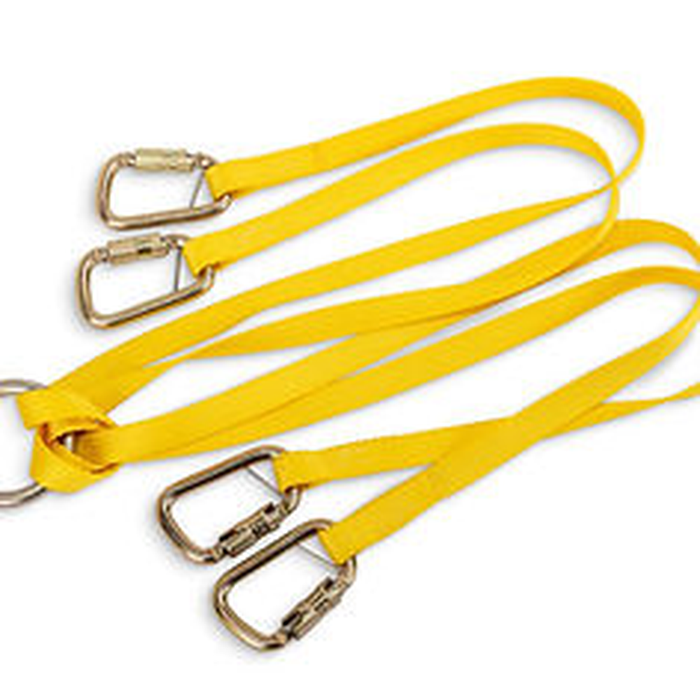 The JSA-300-X-TL bridal sling provides horizontal or vertical lifting capacity up to 2500 lb for Stokes baskets. It features moisture-resistant nylon straps with industry-standard hardware.