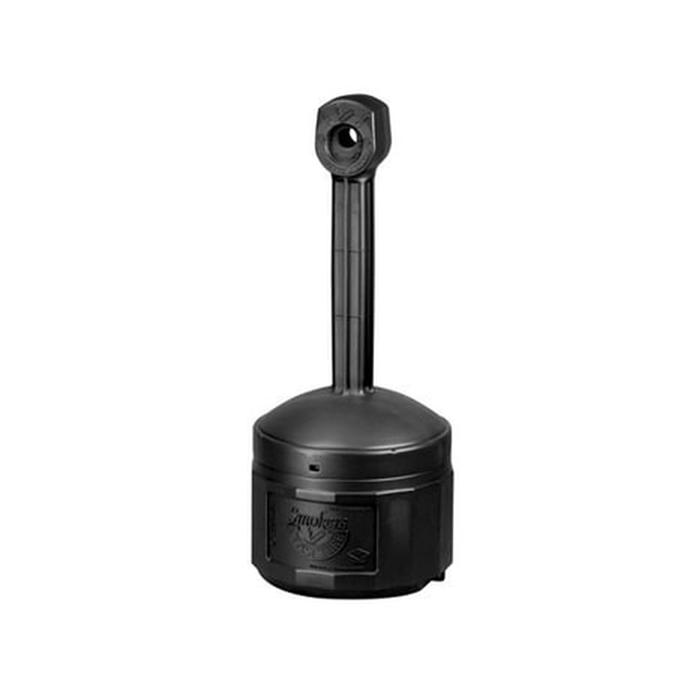 This receptacle uses Cease-Fire technology to safely extinguish cigarettes and keep property clean. It features a broad base for stability and a covered opening to keep rain out.