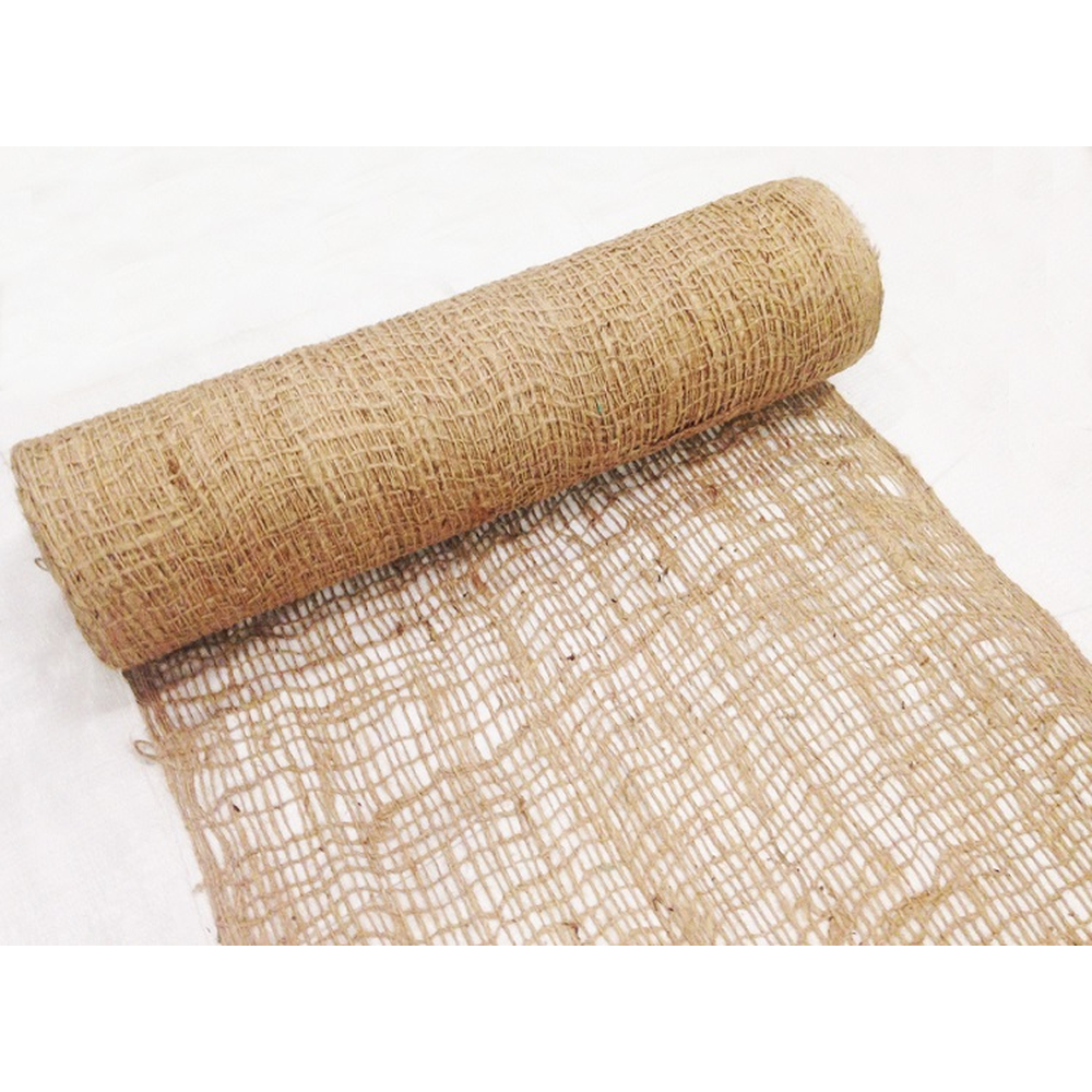 Jute Net is a biodegradable erosion control blanket made from 100% natural jute fibers, woven into an open mesh netting. It is designed for temporary erosion control on slopes, channels, and disturbed soils, providing immediate protection while allowing vegetation to establish.