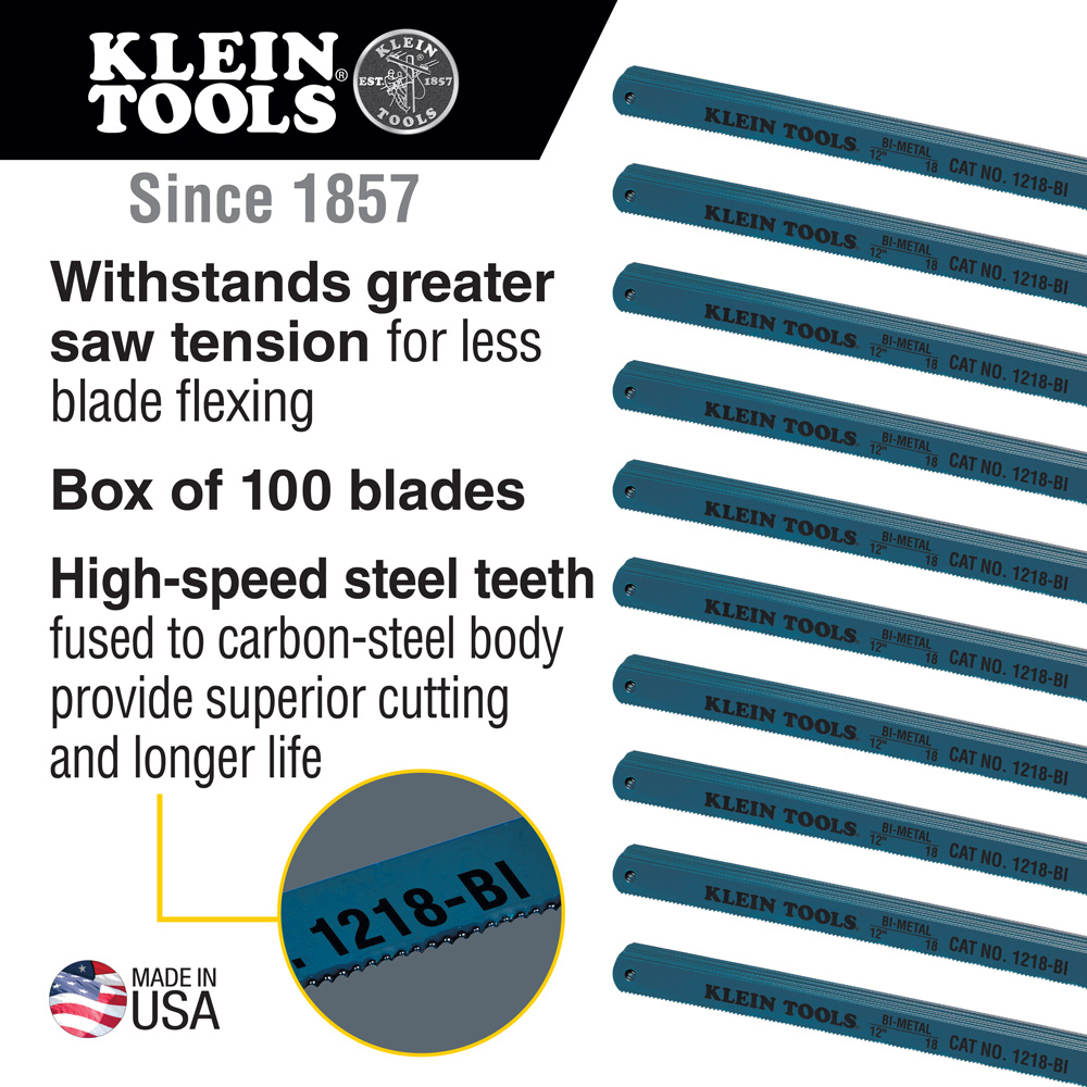 Klein Tools 1218BI Bi-Metal Blades for 12-inch Hacksaws, 18 TPI, Box of 100