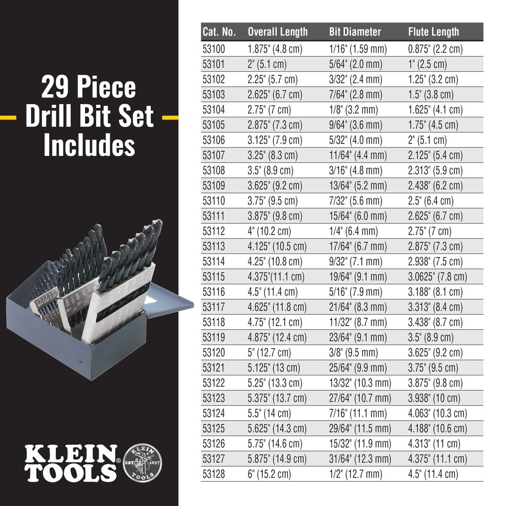 Klein Tools 53000 Regular-Point Drill-Bit Set, 29-Piece