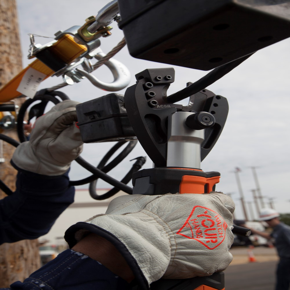 Klein's battery-operated cable cutter reduces time and effort for linemen. It cuts up to 750 MCM copper and 1000 MCM aluminum with 7-ton hydraulic force.
