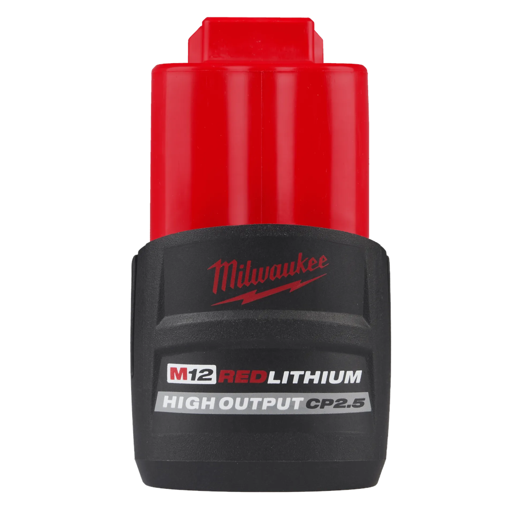 The Milwaukee M12 REDLITHIUM HIGH OUTPUT CP2.5 Battery Pack delivers 25% more power and runs 25% cooler compared to standard M12 REDLITHIUM CP batteries. This pack provides the power and runtime of an XC battery in a significantly lighter and more compact form factor, making it ideal for overhead work and tight spaces. Built with a durable, resistant housing, it offers superior protection against common jobsite oils, greases, and solvents.