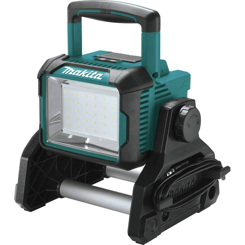 The 18V LXT® Lithium-Ion Cordless/Corded Work Light (DML811) offers the convenience of cordless or corded operation, and provides bright and even illumination for work spaces. At full brightness it provides 3,000 lumens of light, and 750 lumens on low mode. Adjusting knobs enable the user to direct the light to the desired angle. The Work Light can be mounted on an optional tripod stand (sold separately). Dust and water-resistant construction (IP65 rated) for improved operation in harsh job site conditions.