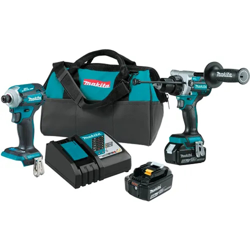 The 18V LXT® Lithium-Ion Brushless 2-Piece Combo Kit (XT288T) delivers two premium brushless tools for drilling, driving, and fastening. The Kit includes two fast-charging 18V LXT® 5.0Ah batteries, which are compatible with the full range of Makita LXT® tools and products.