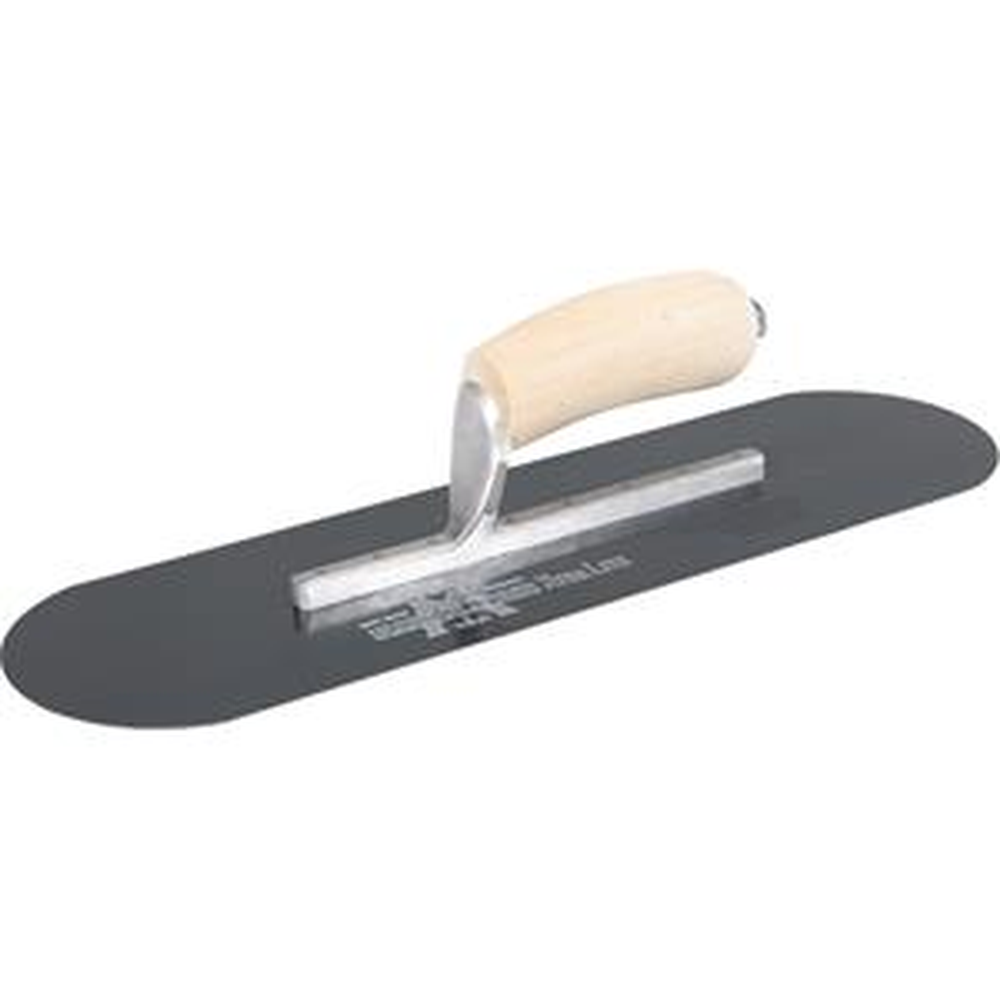 The MARSHALLTOWN Blue Steel Pool Trowel is flexible enough to bend to almost any radius. It features a hardened and tempered blue spring steel blade with an aluminum alloy mounting.