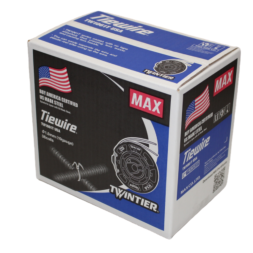 The MAX TW1061T-USA is a premium 19-gauge black annealed steel tie wire specifically engineered for use with the MAX TwinTier series of rebar tying tools. Proudly 100% made in the USA, this wire is Buy America Certified, ensuring it meets strict federal requirements for domestic steel sourcing in bridge and highway projects. The high-quality annealing process delivers excellent tensile strength and flexibility, providing secure ties that resist breakage. Its tape-free coil design simplifies loading and allows for easy recycling of the plastic reels after use.