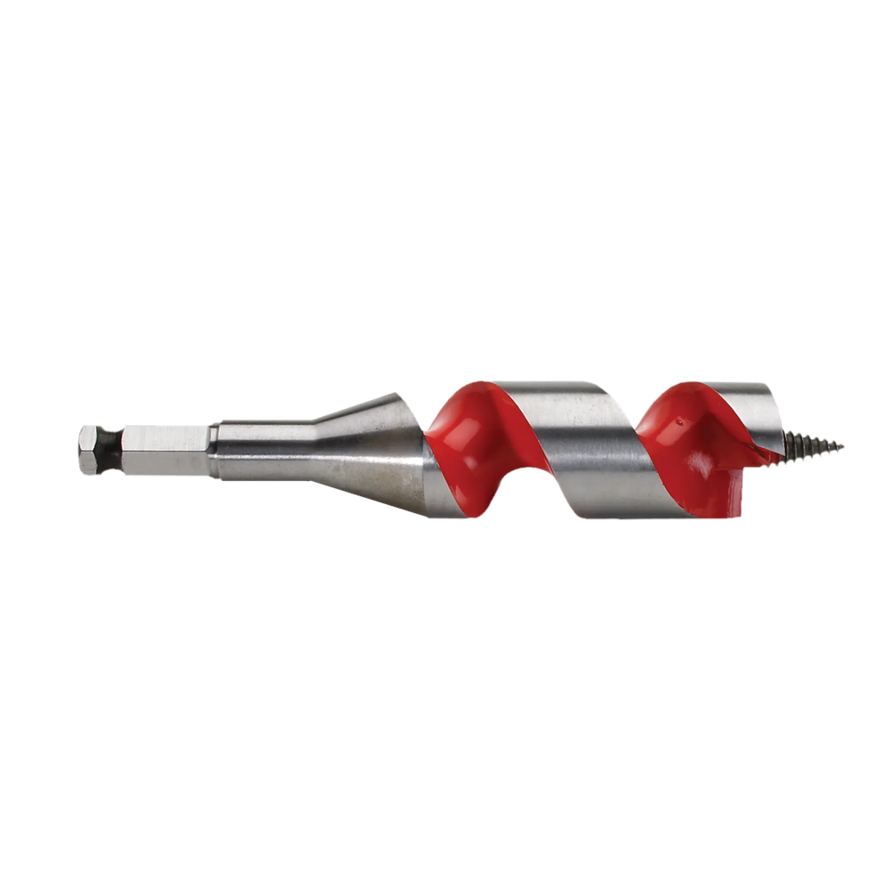 Drill through clean or nail-embedded wood with confidence using the Milwaukee 48-13-1253 Ship Auger Bit. Designed for electricians, plumbers, and utility trades, this bit excels at installing Romex wire, PEX water lines, rebar, bolts, and rope. Its wider flutes ensure maximum chip removal, even in deep holes, while the polished and coated flute finish prevents sticky residue. The through-center cutting design provides a more solid striking point against nails, outperforming other bits.