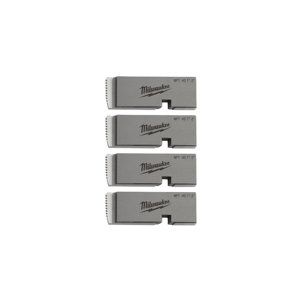 The Milwaukee 1'-2' High Speed NPT Universal Pipe Threading Dies are high-performance threading tools engineered for precision and durability in professional applications. These dies are crafted from high-speed steel to withstand the high-torque demands of high-volume threading, maintaining a sharp cutting edge significantly longer than standard alloy dies. Optimized for use with Milwaukee's MX FUEL Pipe Threading Machine, they deliver consistent, leak-free mechanical connections for black iron and galvanized pipe threading tasks.