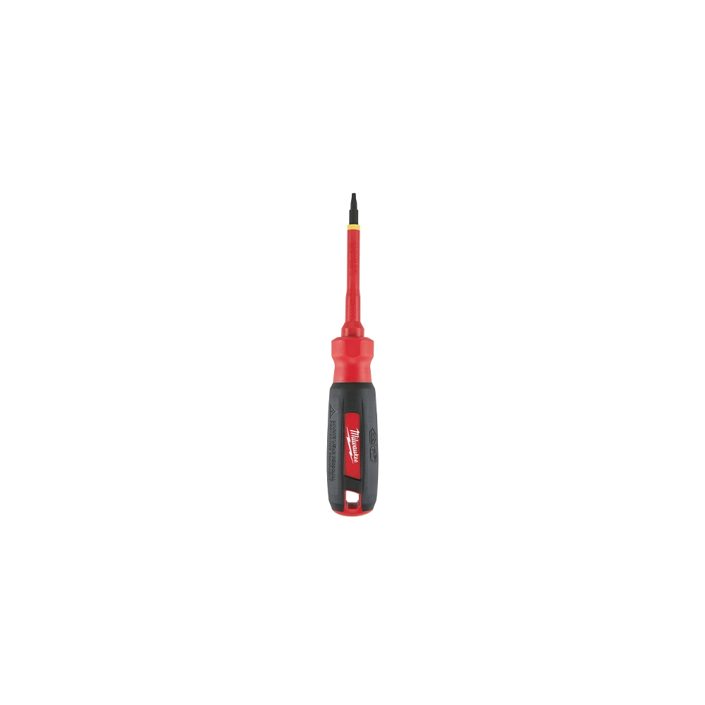 The Milwaukee #1 Square - 3' 1000V Insulated Screwdriver is an essential tool for professional electricians, providing uncompromised safety and durability on the jobsite. This screwdriver is UL Classified and tested to stringent IEC and ASTM standards to ensure 1000V protection. Featuring a high-visibility dual-layer insulation system and an ergonomic handle, it offers both maximum protection and comfort during demanding electrical installations.