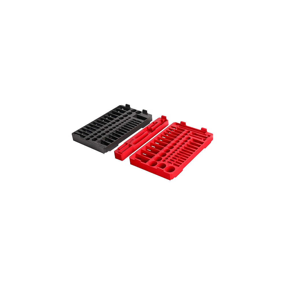 The Milwaukee 48-22-9486T is a specialized storage solution designed to integrate the 106-piece ratchet and socket set into the PACKOUT modular storage system. These trays provide a dedicated, high-visibility organization system for both 1/4' and 3/8' drive sockets, ensuring that tools stay securely in place during transport. By utilizing color-coded layouts for SAE and Metric sizes, professionals can significantly reduce time spent searching for the correct fastener and improve overall jobsite efficiency.