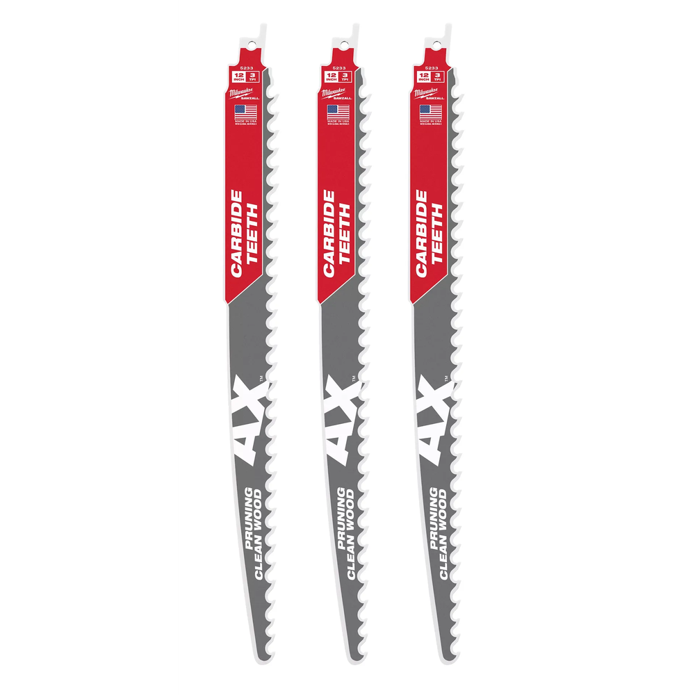 Milwaukee 12 in 3 TPI AX Carbide Teeth SAWZALL Blade for Pruning (3 PK)